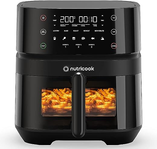 Nutricook Air Fryer 3 Vision with Clear Window and Internal Light by Caliber Brands, 5.7L, Air Fry, Roast, Bake, Dehydrate & Reheat, 6 Presets, AF357V, Black, 1700 Watts, 2 Year Warranty