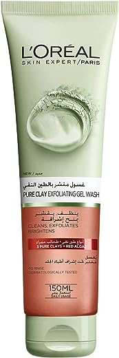 منظف لوريال باريس بالطين الاحمر والطحالب الحمراء، يقشر ويضيء، 150 مل
