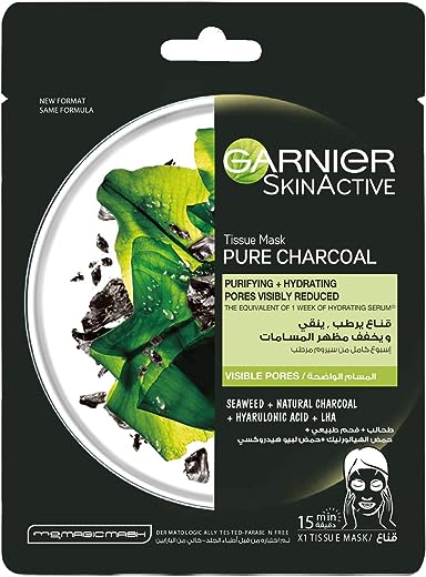 مناديل ماسك سكين اكتيف لترطيب الوجه وتخفيف مظهر المسام بالفحم النقي من جارنيه بوزن 28 غرام