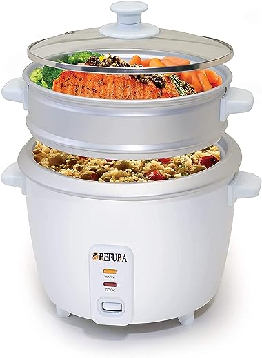 جهاز طهي الارز بالبخار 2 في 1 من ريفورا 1.5 لتر، وعاء قابل للازالة غير لاصق، وظيفة الحفاظ على الدفء، 500 واط، يتضمن كوب معايرة وملعقة مسطحة، ادوات المطبخ، موديل RE-619