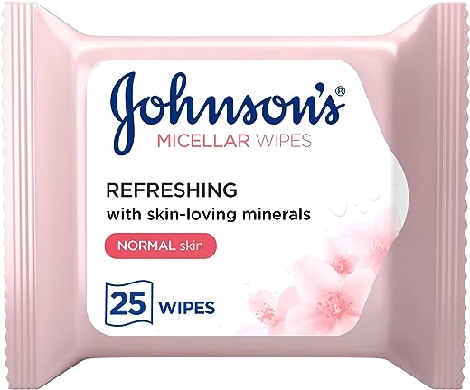 جونسون مناديل مبللة منعشة بالمعادن المحبة للبشرة، 25 منديل، مناسبة للبشرة العادية، مناديل لطيفة وفعالة لإزالة المكياج، ترطب وتنظف، آمنة للعيون الحساسة Prices