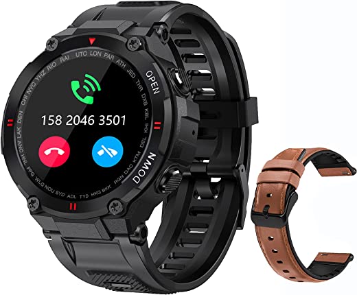 Specification: ساعة ذكية عسكرية للرجال في الهواء الطلق مقاومة للماء ساعة ذكية تكتيكية تعمل بالبلوتوث ومكبر صوت للمكالمات بشاشة تعمل باللمس عالي الدقة مقاس 1.3 بوصة ومتتبع اللياقة البدنية متوافق مع iPhone Samsung