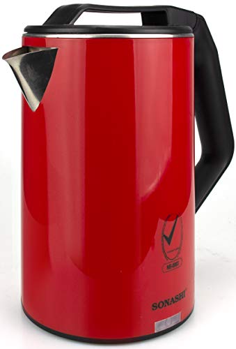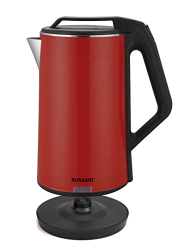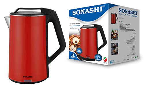 غلاية لاسلكية من سوناشي سعة 1.8 لتر [احمر-اسود] SKT-1803 – غلاية من الستانلس ستيل مع قاعدة دوارة بزاوية 360 درجة، ايقاف تشغيل تلقائي، ضوء مؤشر تشغيل/ايقاف التشغيل | اجهزة المطبخ Prices